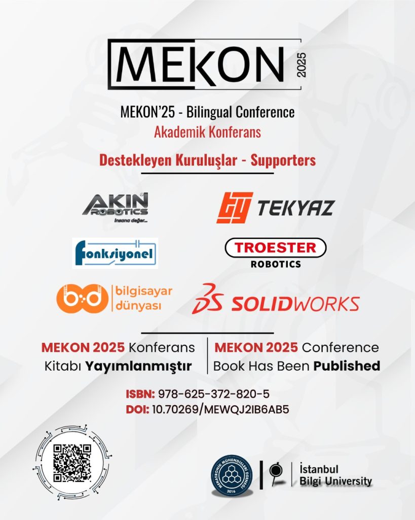 📘 The MEKON 2025 Proceedings Book unites Türkiye’s pioneering research and academic contributions in mechatronics with the global academic community.