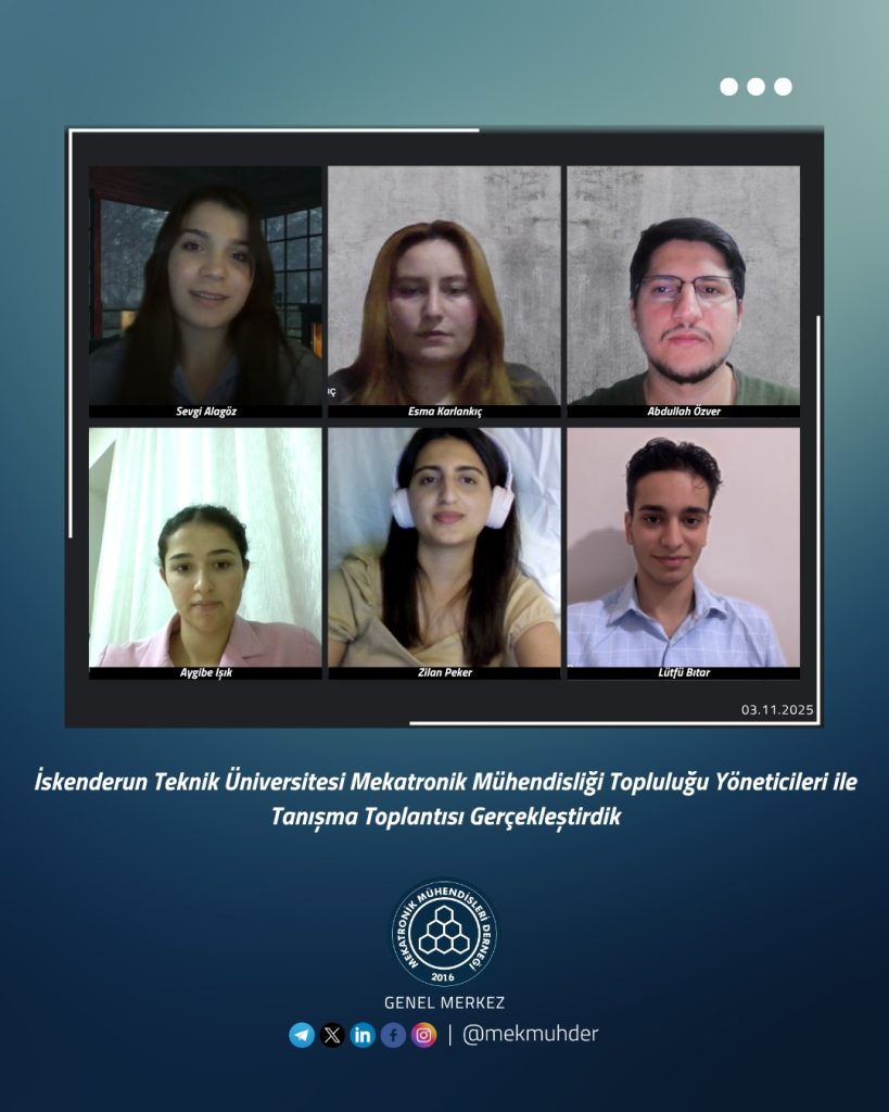 Yeni kurulan İskenderun Teknik Üniversitesi Mekatronik Mühendisliği Topluluğu yönetimi ile çevrim içi bir tanışma toplantısı gerçekleştirildi.