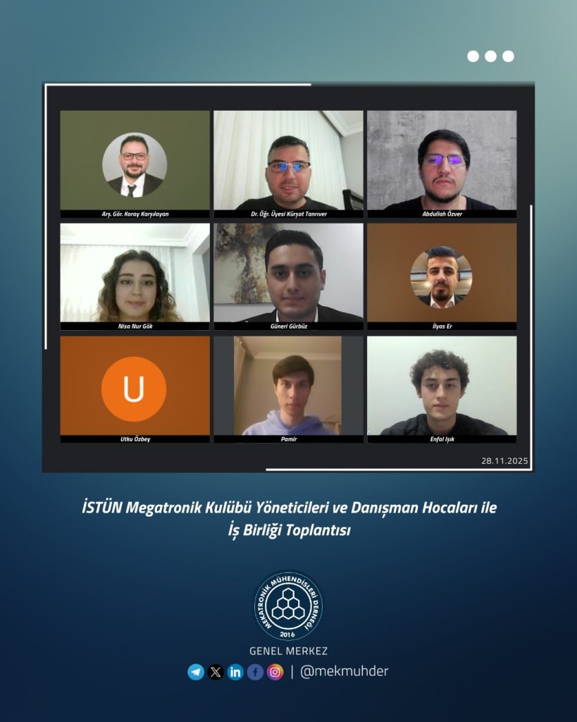 MEKMÜHDER olarak, İstanbul Sağlık ve Teknoloji Üniversitesi Megatronik Kulübü (İSTÜN) yönetimi ve danışman hocalarıyla verimli bir çevrim içi toplantı gerçekleştirdik.