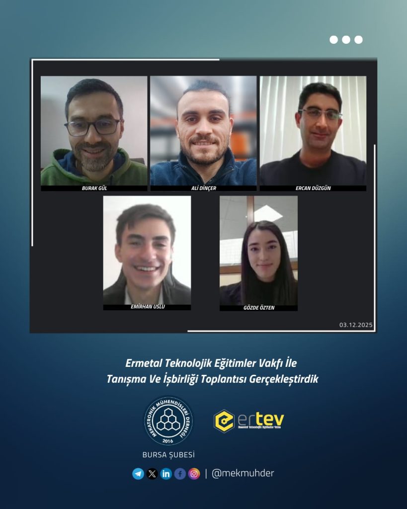 Mekatronik Mühendisleri Derneği ile Ermetal Teknolojik Eğitimler Vakfı arasında çevrim içi bir tanışma toplantısı gerçekleştirildi.