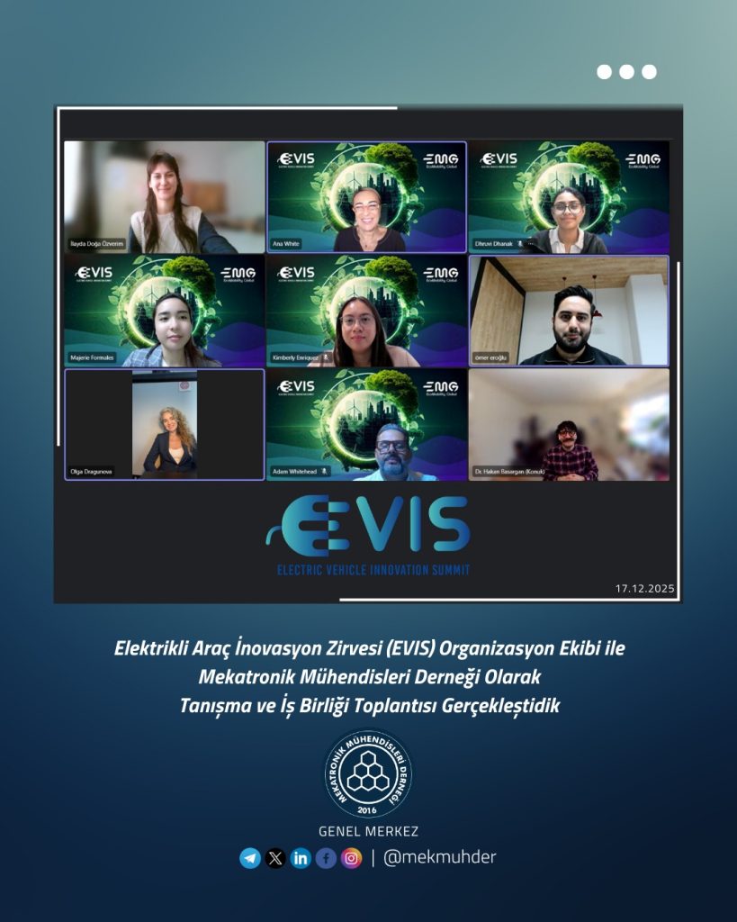 Elektrikli Araç İnovasyon Zirvesi (EVIS) ekibi ile Mekatronik Mühendisleri Derneği (MEKMÜHDER) arasında tanışma ve iş birliği toplantısı gerçekleştirildi.