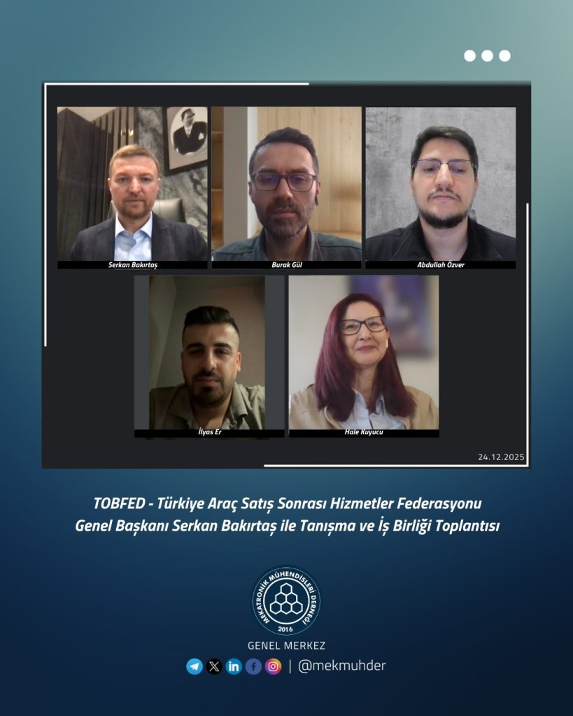 Mekatronik Mühendisleri Derneği (MEKMÜHDER) olarak, Türkiye Araç Satış Sonrası Hizmetler Federasyonu (TOBFED) ile tanışma ve olası iş birliği alanlarını değerlendirmek üzere verimli bir toplantı gerçekleştirdik.