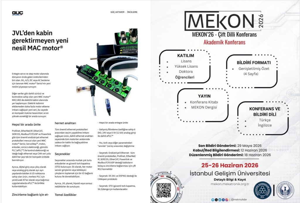 Mekatronik, güç aktarım ve hareket kontrol sistemleri alanındaki akademik ve sektörel çalışmaları bir araya getiren MEKON 2026’ya dair detayları derginin ilgili sayfalarında inceleyebilirsiniz.