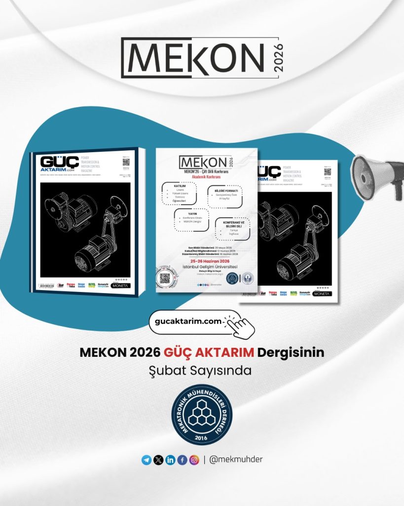 The MEKON 2026 Academic Conference has been featured in the February 2026 edition of GÜÇ AKTARIM Magazine, one of the leading publications in the power transmission and motion control sector.