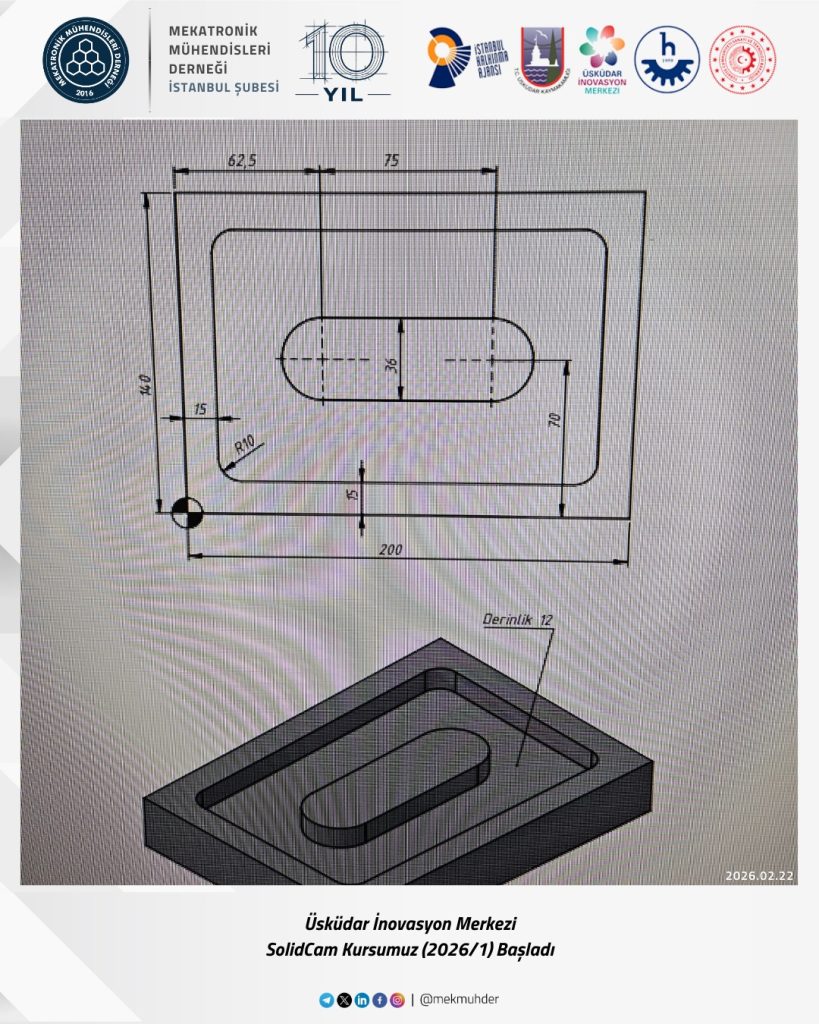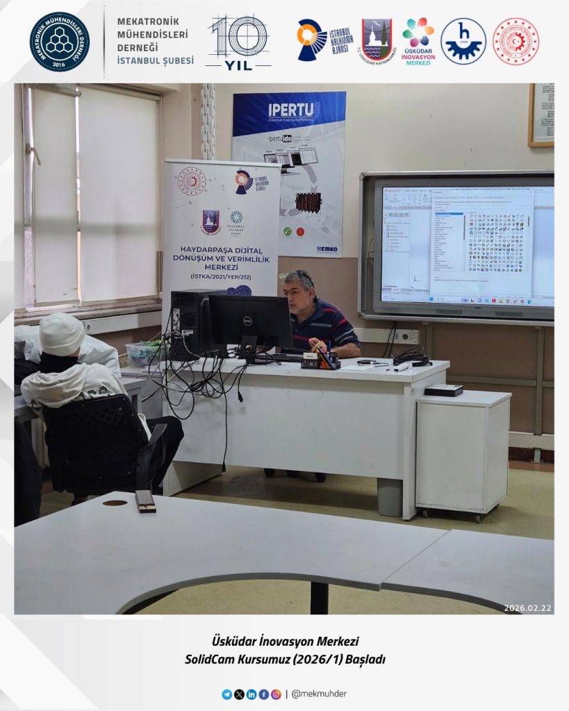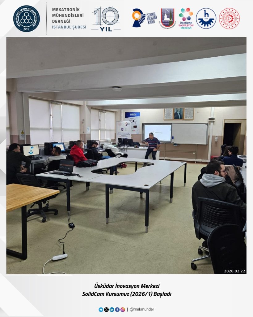 Mekatronik Mühendisleri Derneği İstanbul Şubesi olarak, Üsküdar İnovasyon Merkezi iş birliğiyle düzenlediğimiz SolidCAM Kursu (2026/1) eğitimlerimiz başladı.