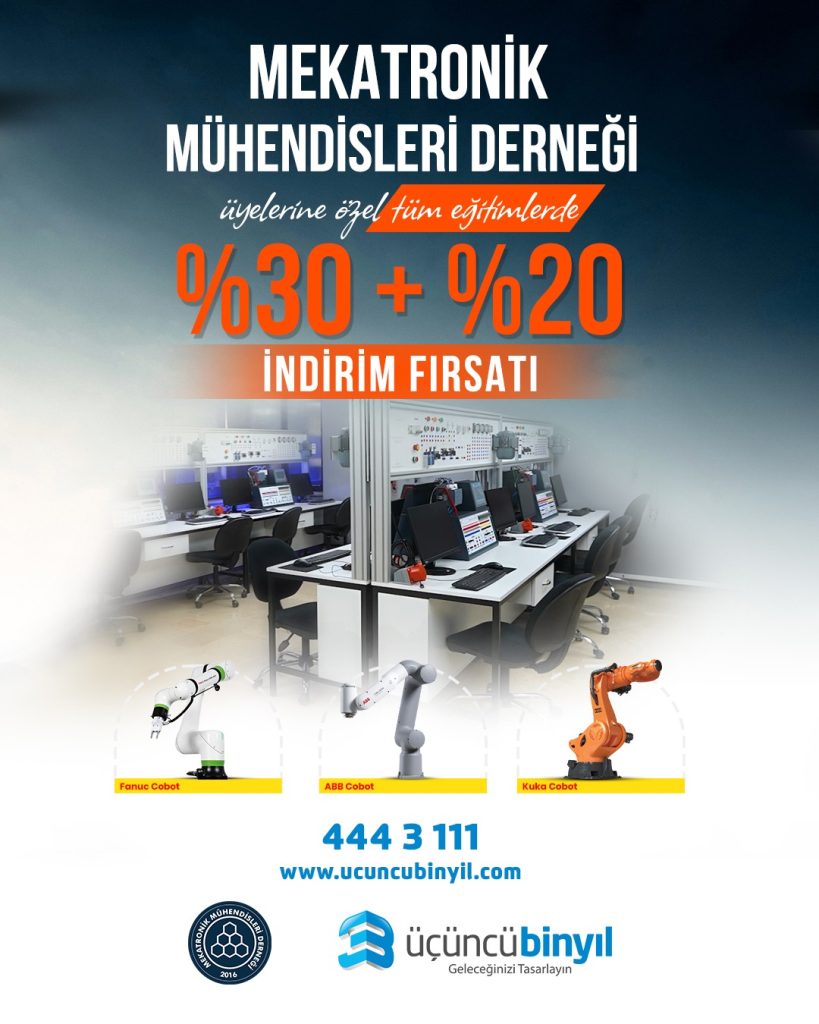 Mekatronik Mühendisleri Derneği üyelerine özel olarak tüm eğitimlerde geçerli %30 + %20 indirim avantajı sizleri bekliyor.
