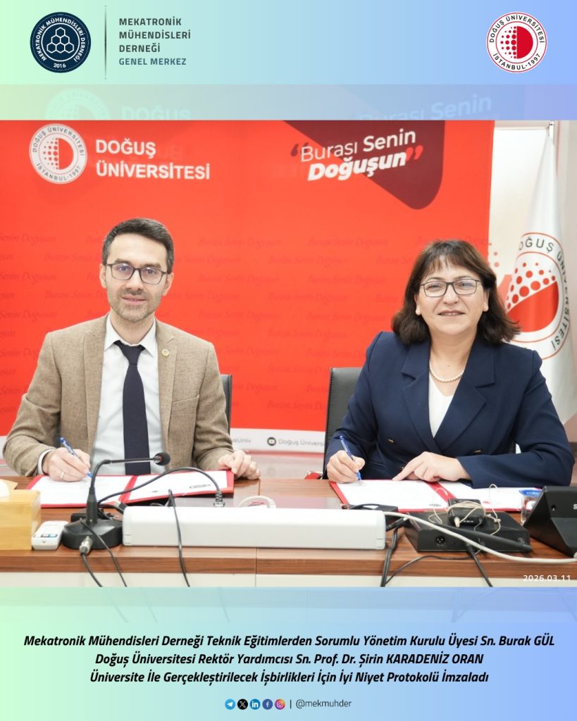 Ziyaret kapsamında Doğuş Üniversitesi Rektörlüğü ziyaret edilerek iş birliği alanlarına yönelik bir toplantı gerçekleştirildi. Ardından, Doğuş Üniversitesi Rektör Yardımcısı Prof. Dr. Şirin Karadeniz Oran ve Mekatronik Mühendisleri Derneği Teknik Eğitimlerden Sorumlu Yönetim Kurulu Üyesi Burak Gül tarafından kurumlar arası iyi niyet protokolü imzalandı.