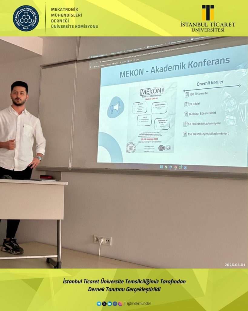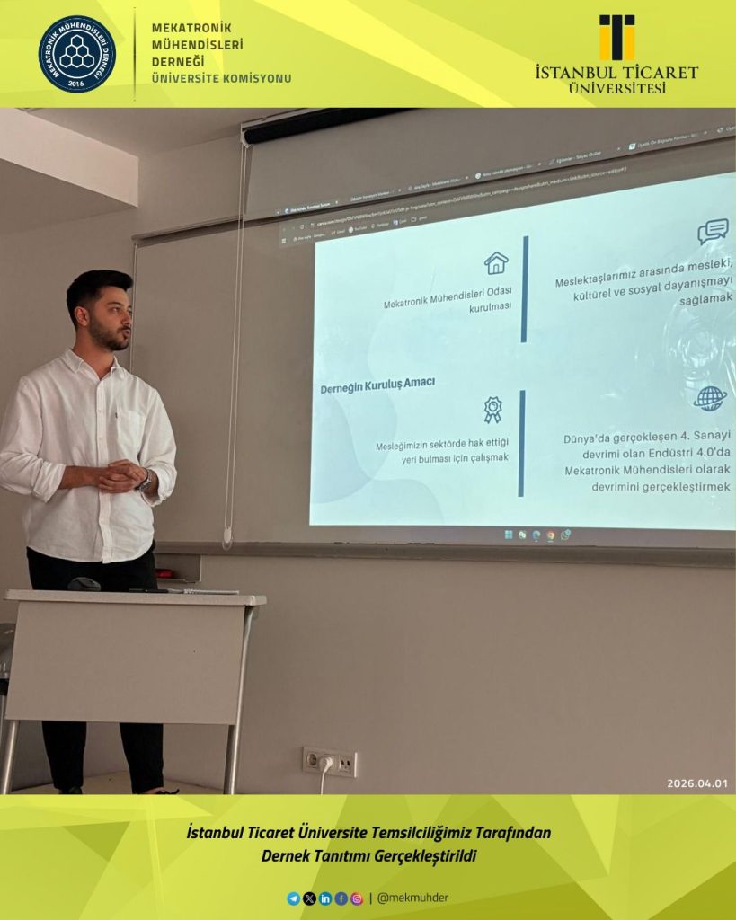 As the Mechatronics Engineers Association, an association introduction event was held at Istanbul Commerce University by our university representative Eser Atik.