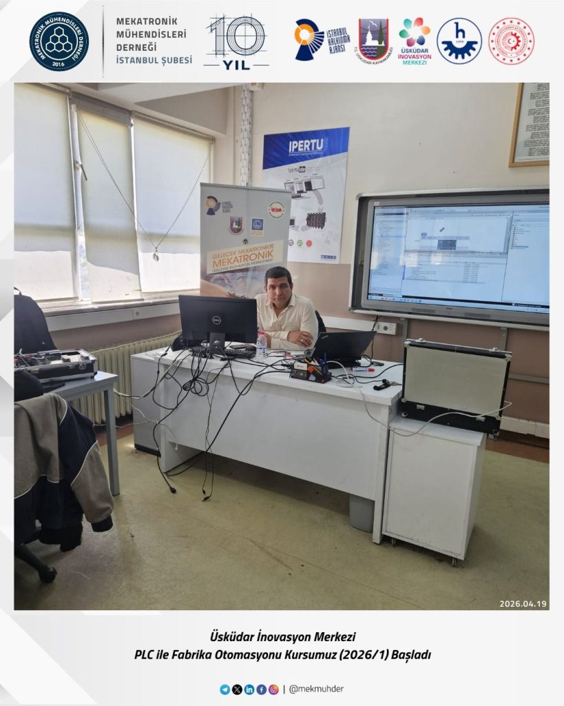 Üsküdar İnovasyon Merkezi ve Mekatronik Mühendisleri Derneği iş birliğiyle düzenlenen “PLC ile Fabrika Otomasyonu (2026/1)” eğitim programı, gerçekleştirilen ilk ders ile faaliyetlerine başlamıştır. ✨