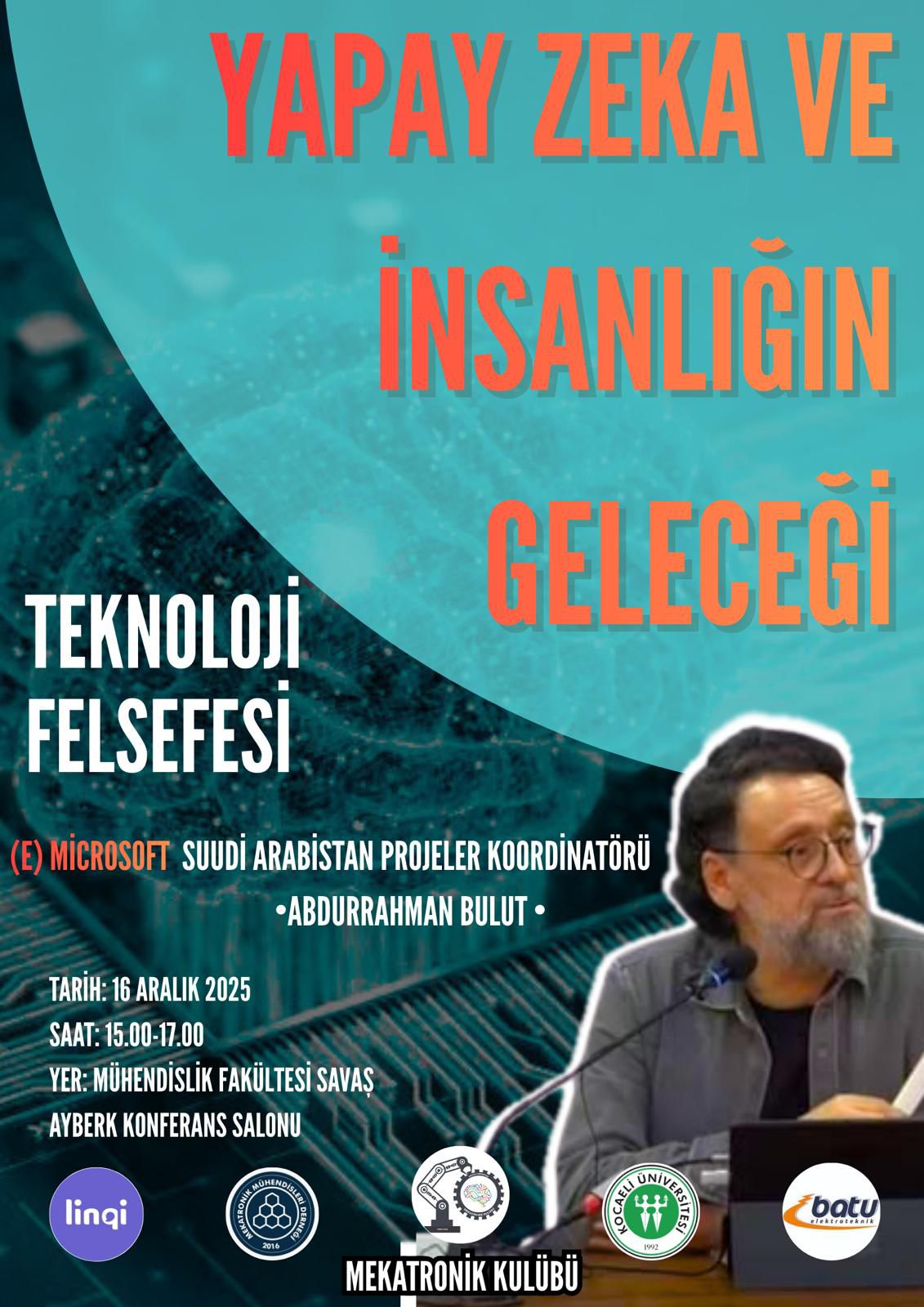 🎓🤖 Yapay Zekâ ve İnsanlığın Geleceği / Teknoloji Felsefesi Etkinliği’nde Kocaeli Üniversitesi Mekatronik Kulübü olarak çok değerli bir konuğu ağırlıyoruz!